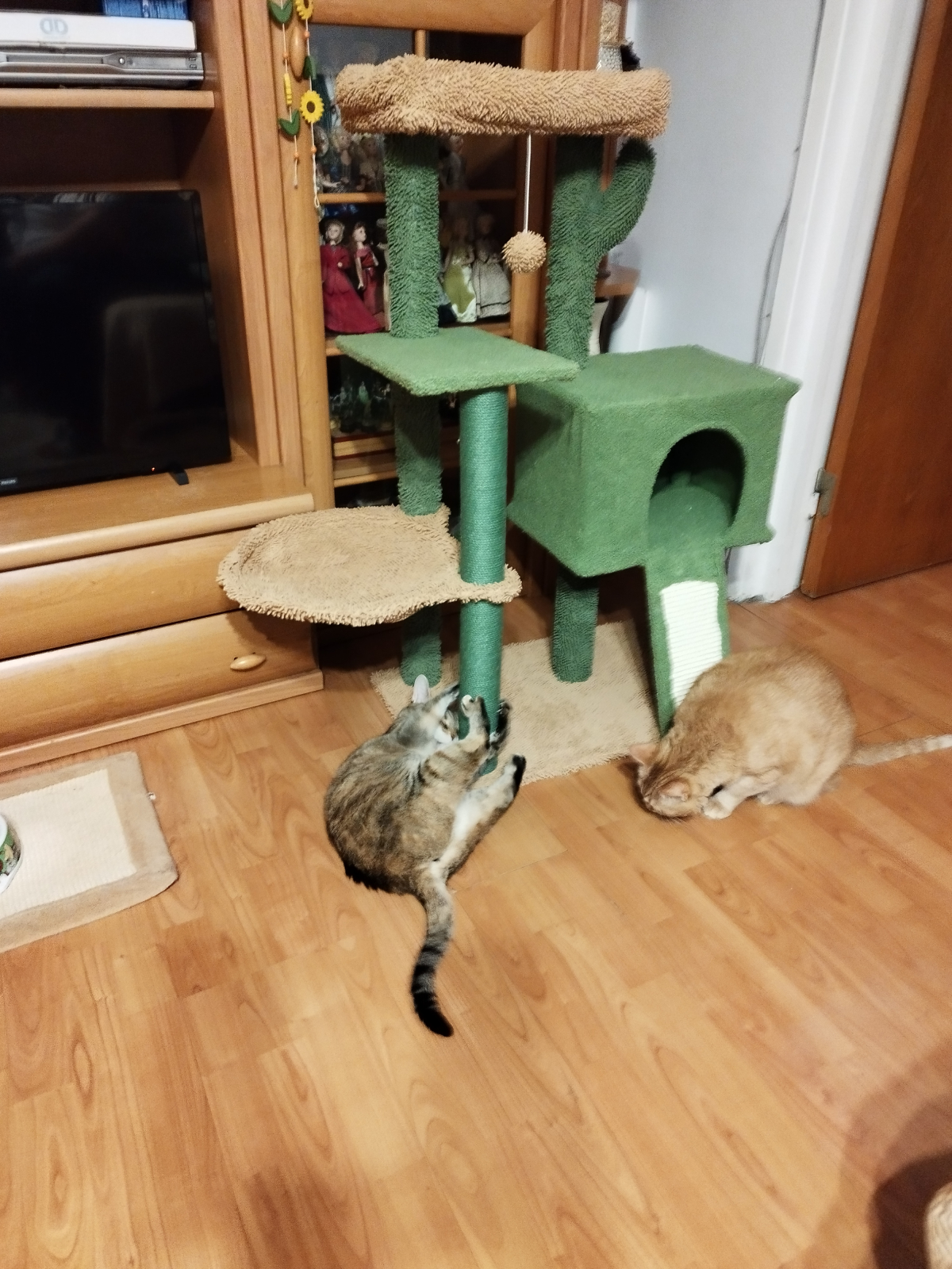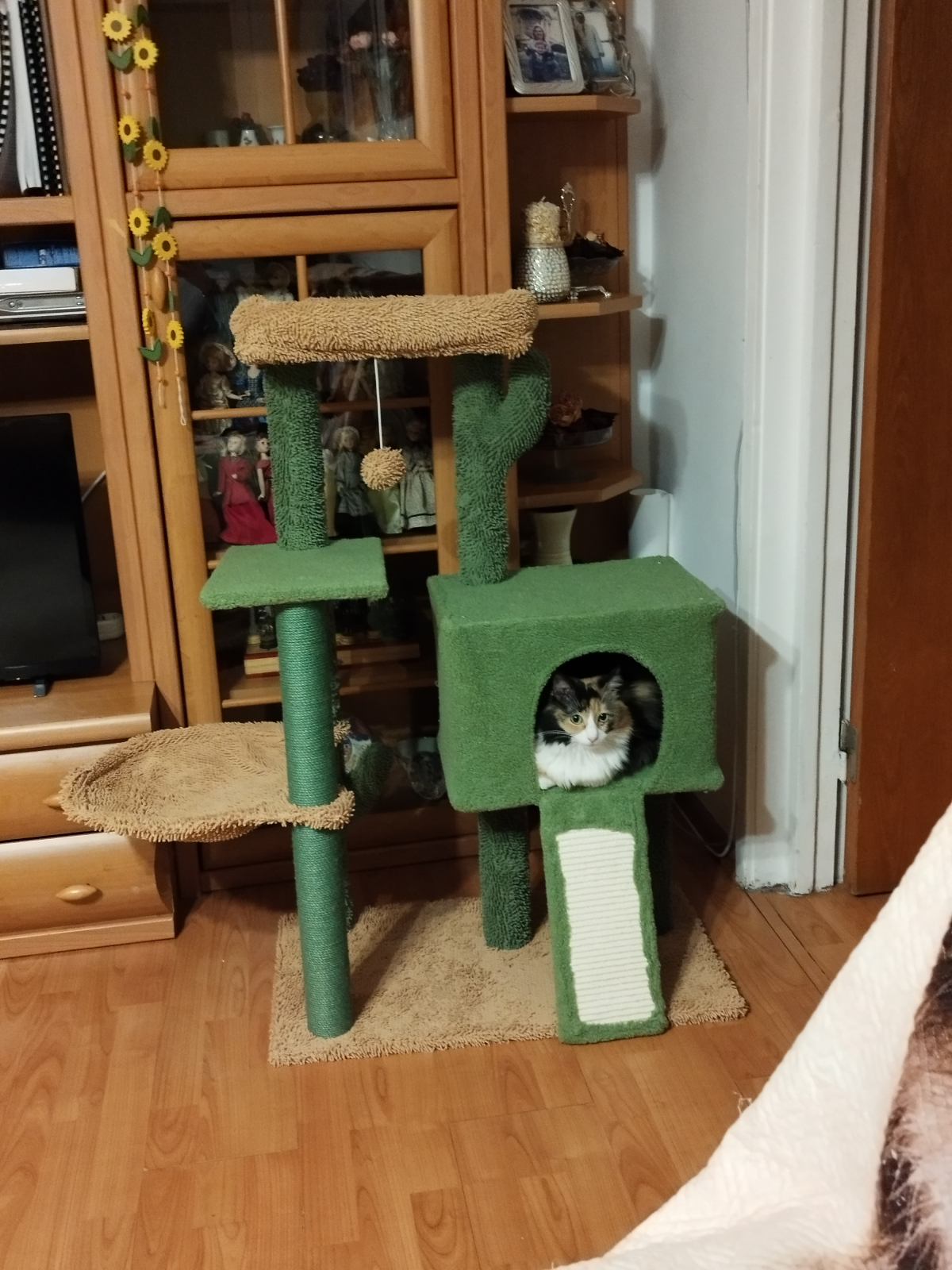 Pisicile mele sunt tare fericite sa aiba o astfel de jucarie, le place sa-si petreaca timpul dormind pe ea si chiar isi ascut gherutele de stalpii de sisal. Ansambul este unul zdravan si stabil, am 6 pisici si nu au resit sa il darame, este foarte incapator, materialele folosite sunt de calitate iar designul face sa fie o jucarie atat frumoasa cat si utila. Comunicarea cu vanzatorul este una grozava, printre putine companii care isi respecta clientii. Daca vreti sa ii faceti o bucurie pisicilor dvs, cred ca asta este alegerea perfecta. Recomand!