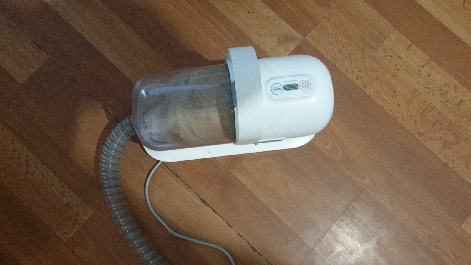 Am încercat acest kit pe cățelușul meu Teckel și sunt foarte mulțumită. Părul său fin și scurt era mereu peste tot, dar acum aspiratorul colectează totul în timpul tunsului. Este ușor de utilizat, iar câinele meu nu a fost deloc deranjat