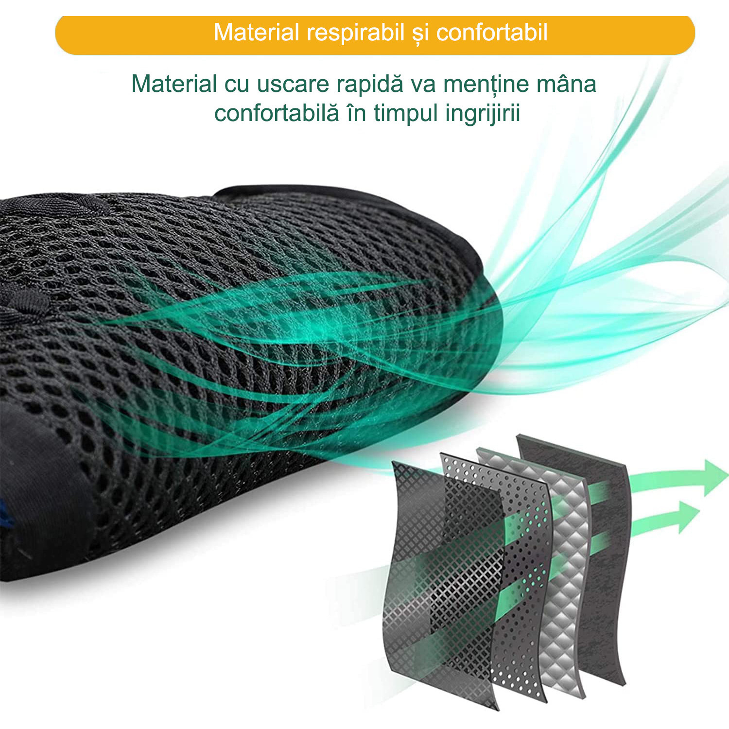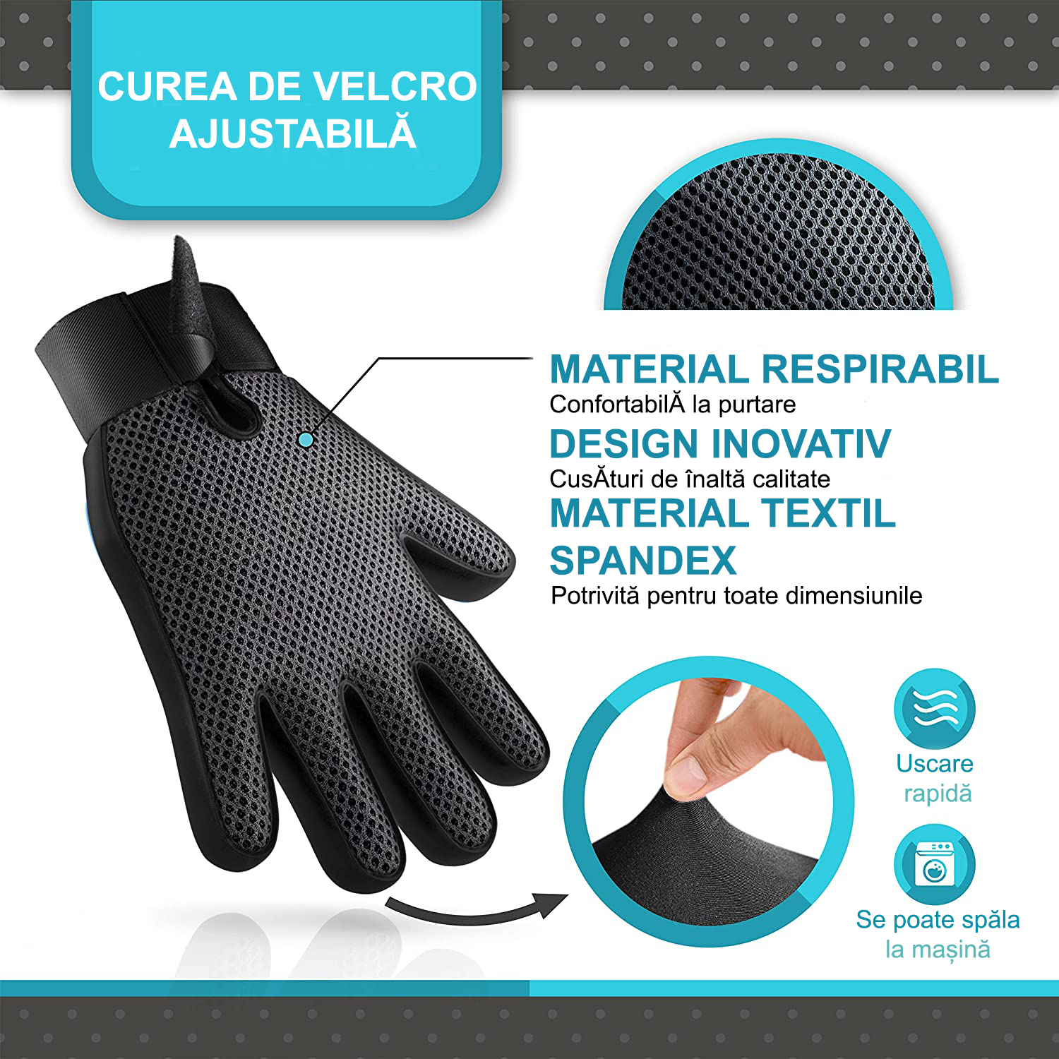 Realizata din cauciuc non-toxic si material respirabil, aceasta manusa este nu numai confortabila pentru tine, dar si complet sigura pentru animalul tau de companie.