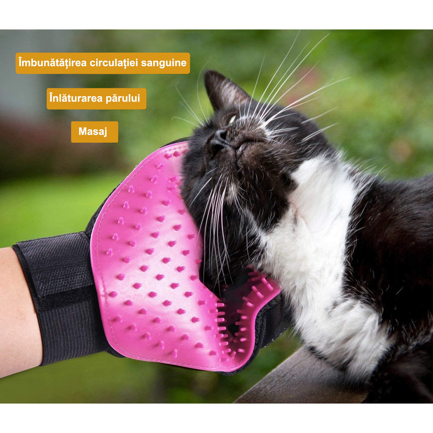 Nu numai ca ajuta la mentinerea unei blanii curate, dar nodulii speciali de pe manusa stimuleaza circulatia sanguina, oferind un masaj relaxant pentru animalul tau. Acest lucru il ajuta sa se simta linistit, iubit si bine ingrijit.