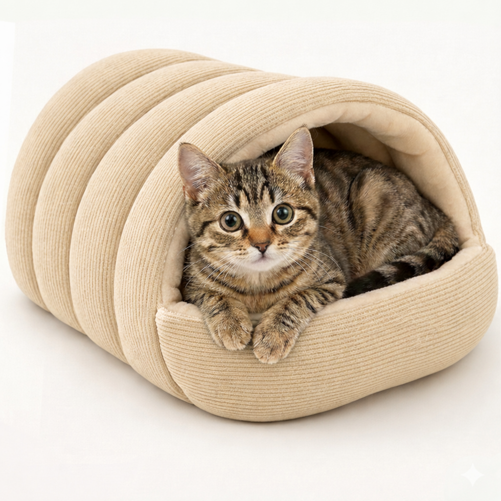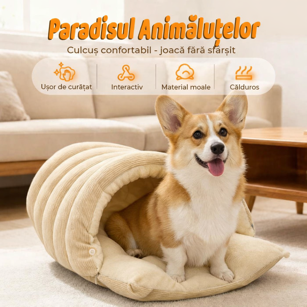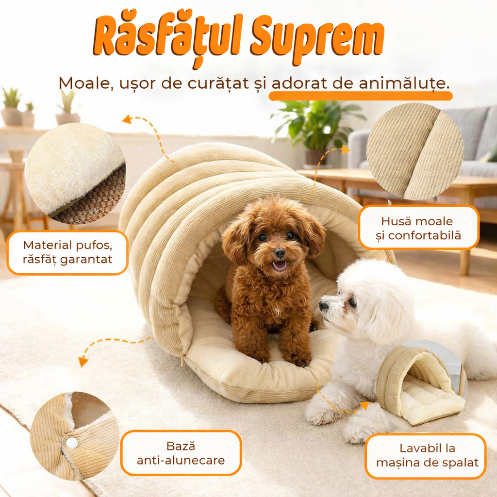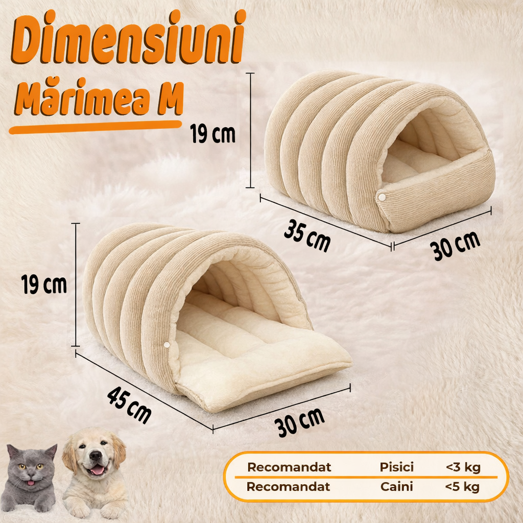 Ofera-i animalului tau de companie un spatiu propriu, sigur si extrem de confortabil cu Culcusul Fish & Paws® Tip Pestera, creat special pentru caini si pisici care iubesc sa se cuibareasca. Designul sub forma de „casuta” ofera protectie, caldura si intimitate, fiind perfect pentru zilele reci de iarna sau pentru animalutele care adora locurile moi si calduroase.